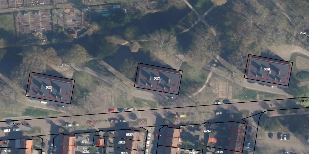 Vreeland 13-E is gelegen op kadastraal perceel AMF00D7970. Deze kadastrale aanduiding is uniek en wordt gebruikt door het Kadaster om eigendomsrechten en andere zakelijke rechten vast te leggen. Het perceel maakt onderdeel uit van de kadastrale gemeente Amersfoort.