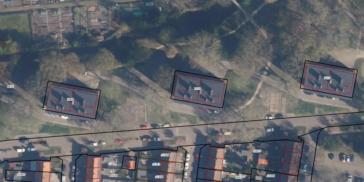 Vreeland 15-B is gelegen op kadastraal perceel AMF00D7970. Deze kadastrale aanduiding is uniek en wordt gebruikt door het Kadaster om eigendomsrechten en andere zakelijke rechten vast te leggen. Het perceel maakt onderdeel uit van de kadastrale gemeente Amersfoort.