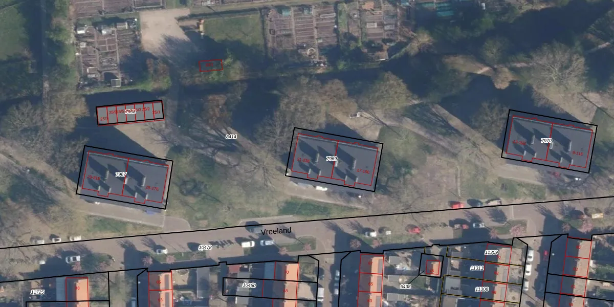 Vreeland 23-E is gelegen op kadastraal perceel AMF00D7969. Deze kadastrale aanduiding is uniek en wordt gebruikt door het Kadaster om eigendomsrechten en andere zakelijke rechten vast te leggen. Het perceel maakt onderdeel uit van de kadastrale gemeente Amersfoort.