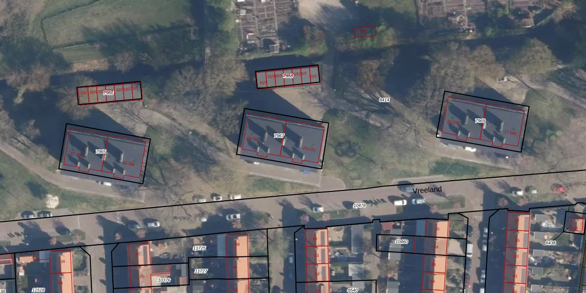 Vreeland 27-B is gelegen op kadastraal perceel AMF00D7967. Deze kadastrale aanduiding is uniek en wordt gebruikt door het Kadaster om eigendomsrechten en andere zakelijke rechten vast te leggen. Het perceel maakt onderdeel uit van de kadastrale gemeente Amersfoort.