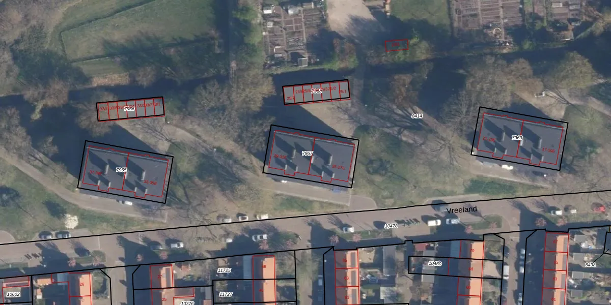 Vreeland 29-D is gelegen op kadastraal perceel AMF00D7967. Deze kadastrale aanduiding is uniek en wordt gebruikt door het Kadaster om eigendomsrechten en andere zakelijke rechten vast te leggen. Het perceel maakt onderdeel uit van de kadastrale gemeente Amersfoort.