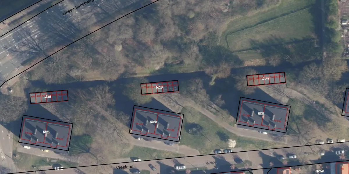 Vreeland 41-1 is gelegen op kadastraal perceel AMF00D7964. Deze kadastrale aanduiding is uniek en wordt gebruikt door het Kadaster om eigendomsrechten en andere zakelijke rechten vast te leggen. Het perceel maakt onderdeel uit van de kadastrale gemeente Amersfoort.
