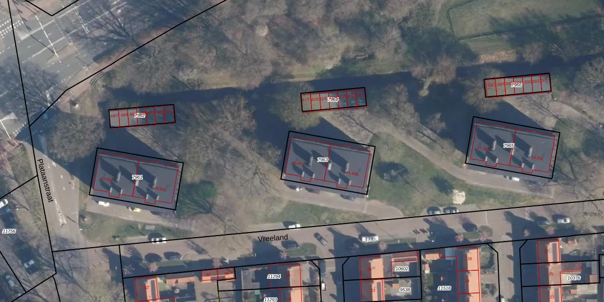 Vreeland 47-E is gelegen op kadastraal perceel AMF00D7963. Deze kadastrale aanduiding is uniek en wordt gebruikt door het Kadaster om eigendomsrechten en andere zakelijke rechten vast te leggen. Het perceel maakt onderdeel uit van de kadastrale gemeente Amersfoort.