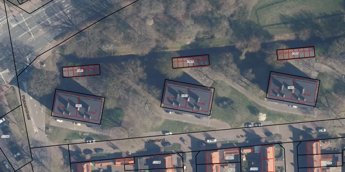 Vreeland 47 is gelegen op kadastraal perceel AMF00D7963. Deze kadastrale aanduiding is uniek en wordt gebruikt door het Kadaster om eigendomsrechten en andere zakelijke rechten vast te leggen. Het perceel maakt onderdeel uit van de kadastrale gemeente Amersfoort.
