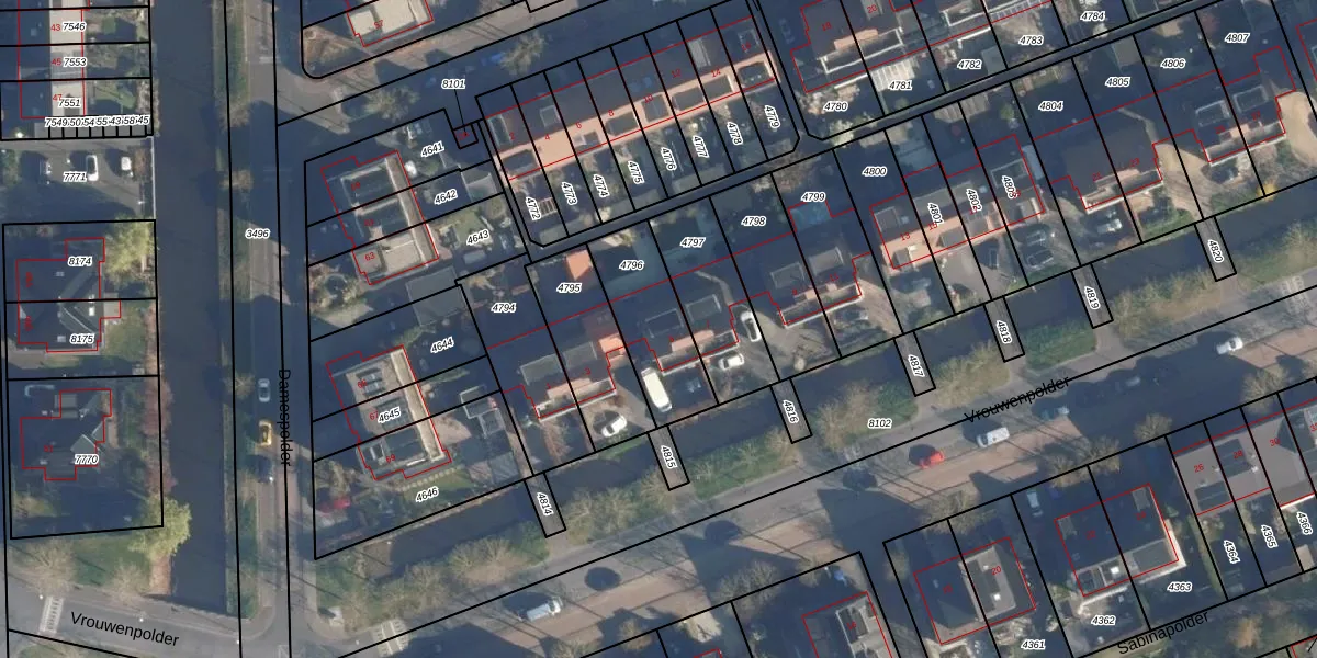 Het perceel waarop Vrouwenpolder 5 staat heeft een oppervlakte van 303 m². Dit is een groot perceel. De perceeloppervlakte wordt geregistreerd door het Kadaster. Gedetailleerde informatie over de maten van dit perceel kunt u vinden in het rapport Kadastrale kaart met maatvoering van Vrouwenpolder 5.