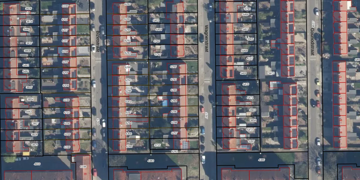 Gebruik de zoekbalk of klik op een perceel voor informatie over de adressen binnen dit perceel.