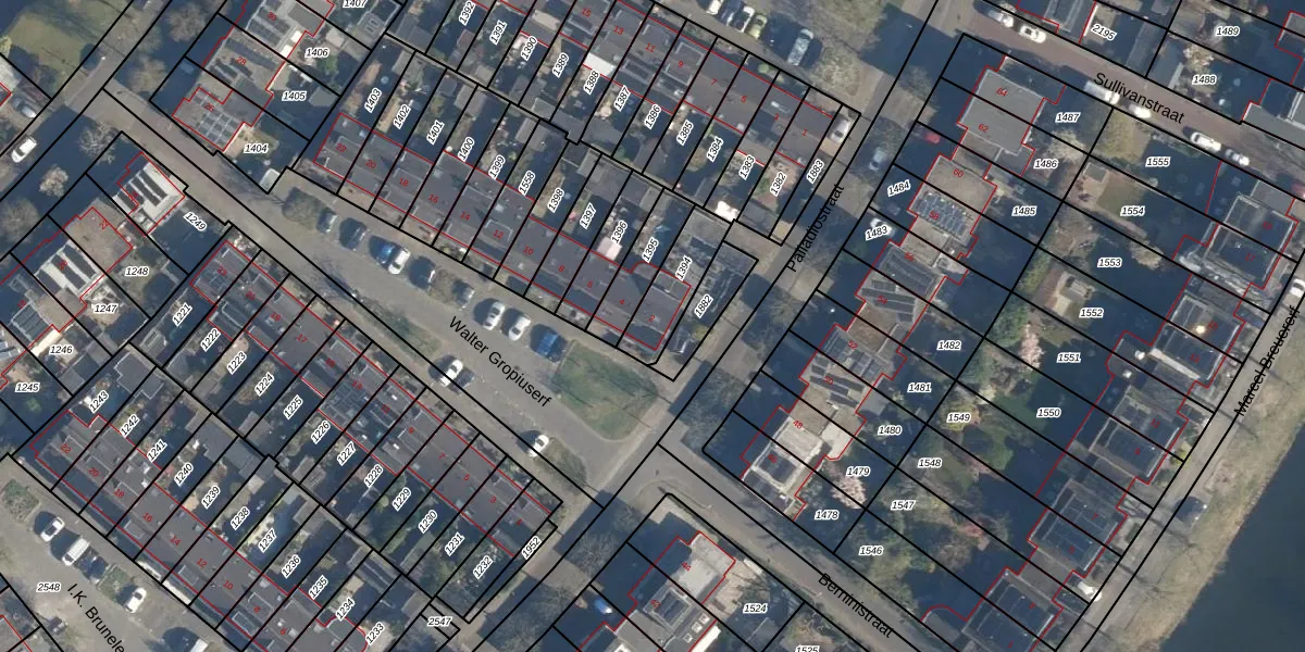 Het perceel waarop Walter Gropiuserf 2 staat heeft een oppervlakte van 165 m². Dit is een middelgroot perceel. De perceeloppervlakte wordt geregistreerd door het Kadaster. Gedetailleerde informatie over de maten van dit perceel kunt u vinden in het rapport Kadastrale kaart met maatvoering van Walter Gropiuserf 2.