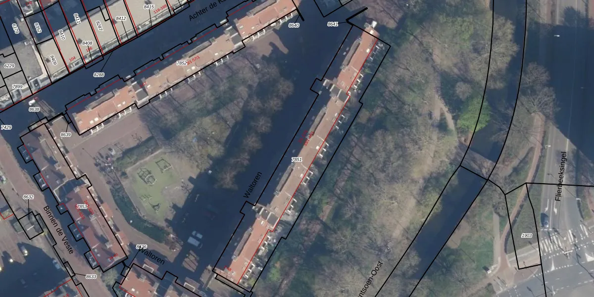 Het perceel waarop Waltoren 15 staat heeft een oppervlakte van 1425 m². Dit is een zeer groot perceel. De perceeloppervlakte wordt geregistreerd door het Kadaster. Gedetailleerde informatie over de maten van dit perceel kunt u vinden in het rapport Kadastrale kaart met maatvoering van Waltoren 15.