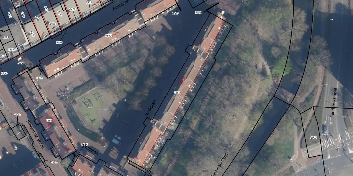 Het perceel waarop Waltoren 16 staat heeft een oppervlakte van 1425 m². Dit is een zeer groot perceel. De perceeloppervlakte wordt geregistreerd door het Kadaster. Gedetailleerde informatie over de maten van dit perceel kunt u vinden in het rapport Kadastrale kaart met maatvoering van Waltoren 16.