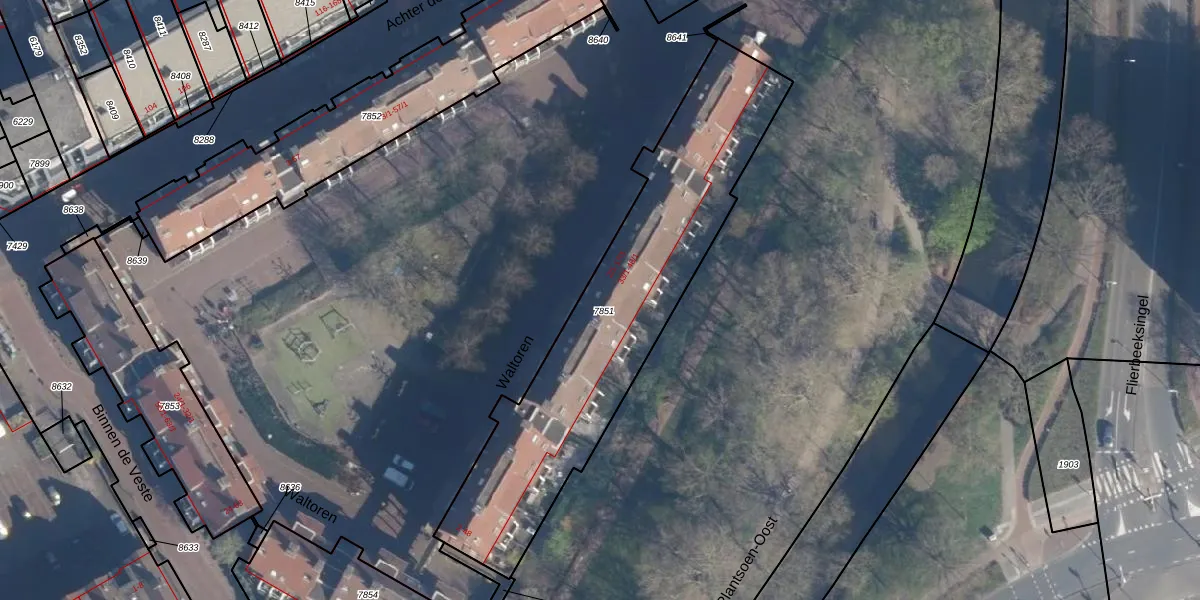 Het perceel waarop Waltoren 17 staat heeft een oppervlakte van 1425 m². Dit is een zeer groot perceel. De perceeloppervlakte wordt geregistreerd door het Kadaster. Gedetailleerde informatie over de maten van dit perceel kunt u vinden in het rapport Kadastrale kaart met maatvoering van Waltoren 17.
