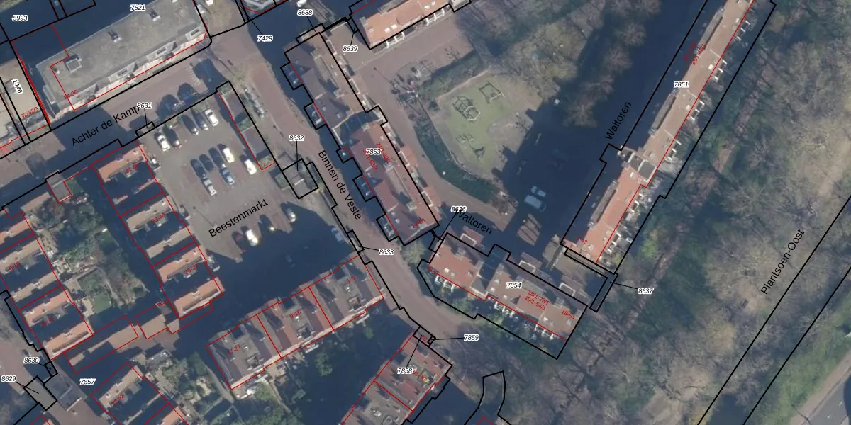 Het perceel waarop Waltoren 24-1 staat heeft een oppervlakte van 595 m². Dit is een groot perceel. De perceeloppervlakte wordt geregistreerd door het Kadaster. Gedetailleerde informatie over de maten van dit perceel kunt u vinden in het rapport Kadastrale kaart met maatvoering van Waltoren 24-1.