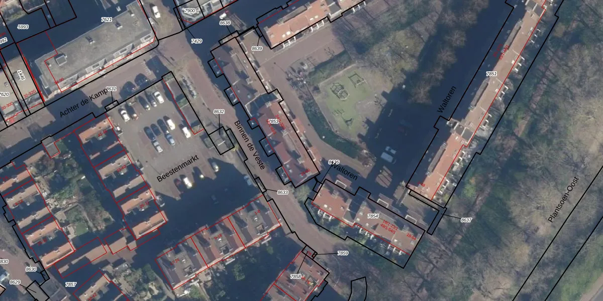 Het perceel waarop Waltoren 25-1 staat heeft een oppervlakte van 595 m². Dit is een groot perceel. De perceeloppervlakte wordt geregistreerd door het Kadaster. Gedetailleerde informatie over de maten van dit perceel kunt u vinden in het rapport Kadastrale kaart met maatvoering van Waltoren 25-1.