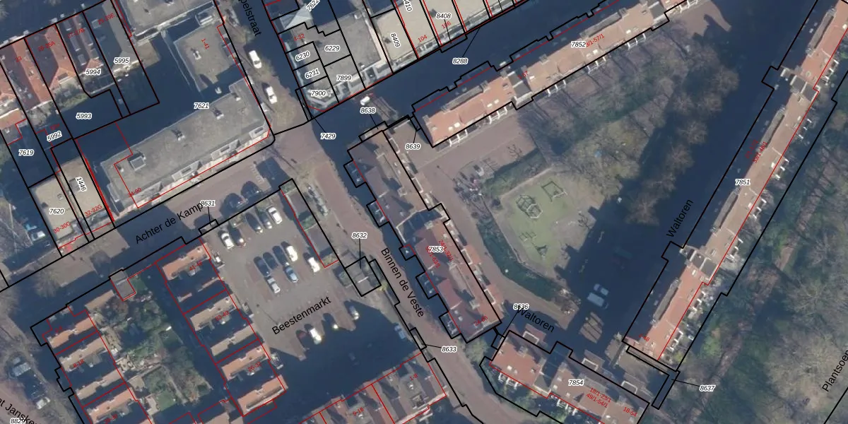 Het perceel waarop Waltoren 31 staat heeft een oppervlakte van 595 m². Dit is een groot perceel. De perceeloppervlakte wordt geregistreerd door het Kadaster. Gedetailleerde informatie over de maten van dit perceel kunt u vinden in het rapport Kadastrale kaart met maatvoering van Waltoren 31.