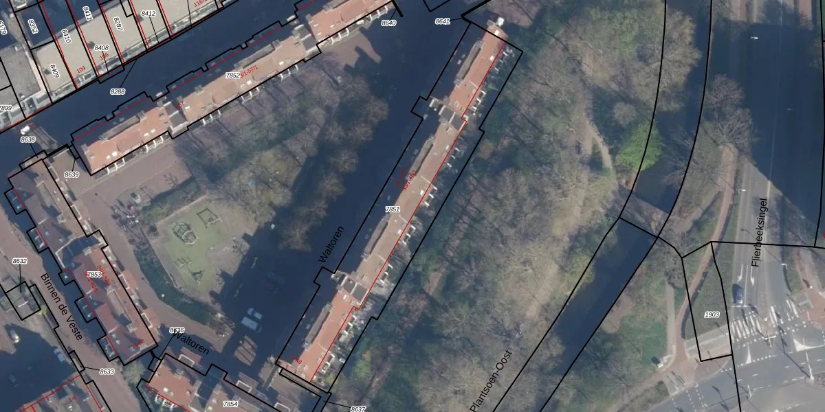 Het perceel waarop Waltoren 38 staat heeft een oppervlakte van 1425 m². Dit is een zeer groot perceel. De perceeloppervlakte wordt geregistreerd door het Kadaster. Gedetailleerde informatie over de maten van dit perceel kunt u vinden in het rapport Kadastrale kaart met maatvoering van Waltoren 38.