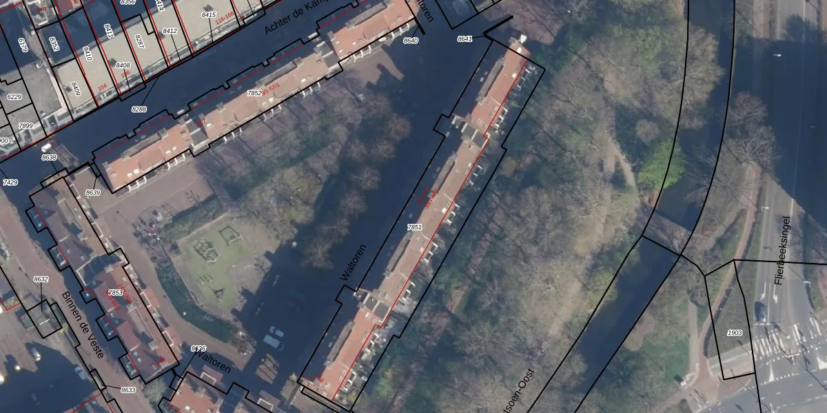 Het perceel waarop Waltoren 5 staat heeft een oppervlakte van 1425 m². Dit is een zeer groot perceel. De perceeloppervlakte wordt geregistreerd door het Kadaster. Gedetailleerde informatie over de maten van dit perceel kunt u vinden in het rapport Kadastrale kaart met maatvoering van Waltoren 5.