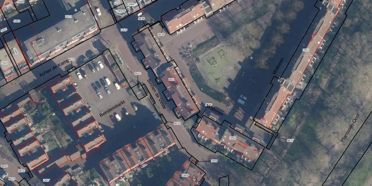Het perceel waarop Waltoren 57-1 staat heeft een oppervlakte van 595 m². Dit is een groot perceel. De perceeloppervlakte wordt geregistreerd door het Kadaster. Gedetailleerde informatie over de maten van dit perceel kunt u vinden in het rapport Kadastrale kaart met maatvoering van Waltoren 57-1.