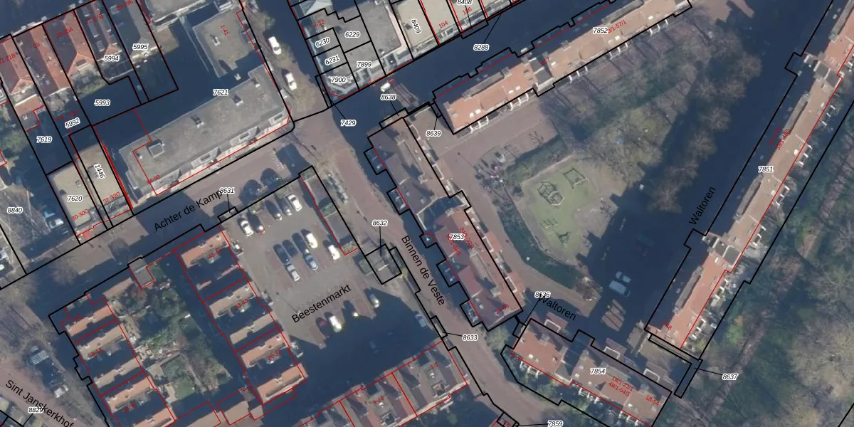 Het perceel waarop Waltoren 61 staat heeft een oppervlakte van 595 m². Dit is een groot perceel. De perceeloppervlakte wordt geregistreerd door het Kadaster. Gedetailleerde informatie over de maten van dit perceel kunt u vinden in het rapport Kadastrale kaart met maatvoering van Waltoren 61.