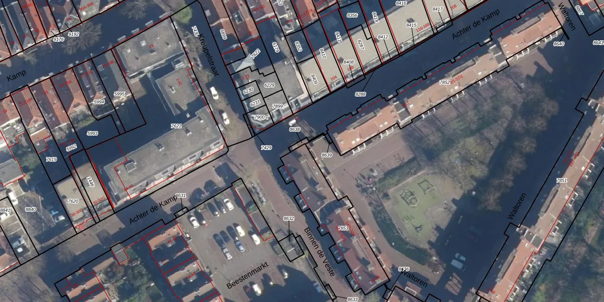 Het perceel waarop Waltoren 63-1 staat heeft een oppervlakte van 595 m². Dit is een groot perceel. De perceeloppervlakte wordt geregistreerd door het Kadaster. Gedetailleerde informatie over de maten van dit perceel kunt u vinden in het rapport Kadastrale kaart met maatvoering van Waltoren 63-1.