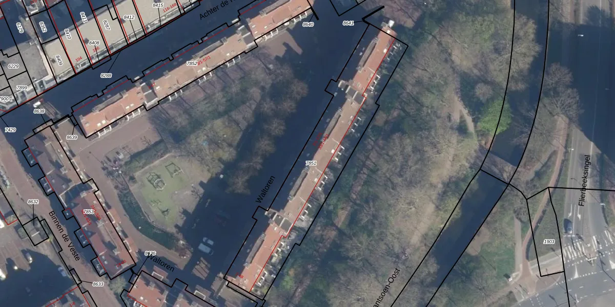 Het perceel waarop Waltoren 7 staat heeft een oppervlakte van 1425 m². Dit is een zeer groot perceel. De perceeloppervlakte wordt geregistreerd door het Kadaster. Gedetailleerde informatie over de maten van dit perceel kunt u vinden in het rapport Kadastrale kaart met maatvoering van Waltoren 7.