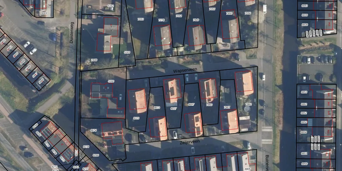 Gebruik de zoekbalk of klik op een perceel voor informatie over de adressen binnen dit perceel.