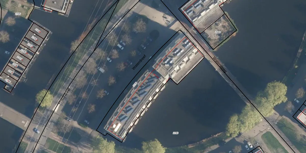 Het perceel waarop Waterdreef 106 staat heeft een oppervlakte van 1653 m². Dit is een zeer groot perceel. De perceeloppervlakte wordt geregistreerd door het Kadaster. Gedetailleerde informatie over de maten van dit perceel kunt u vinden in het rapport Kadastrale kaart met maatvoering van Waterdreef 106.