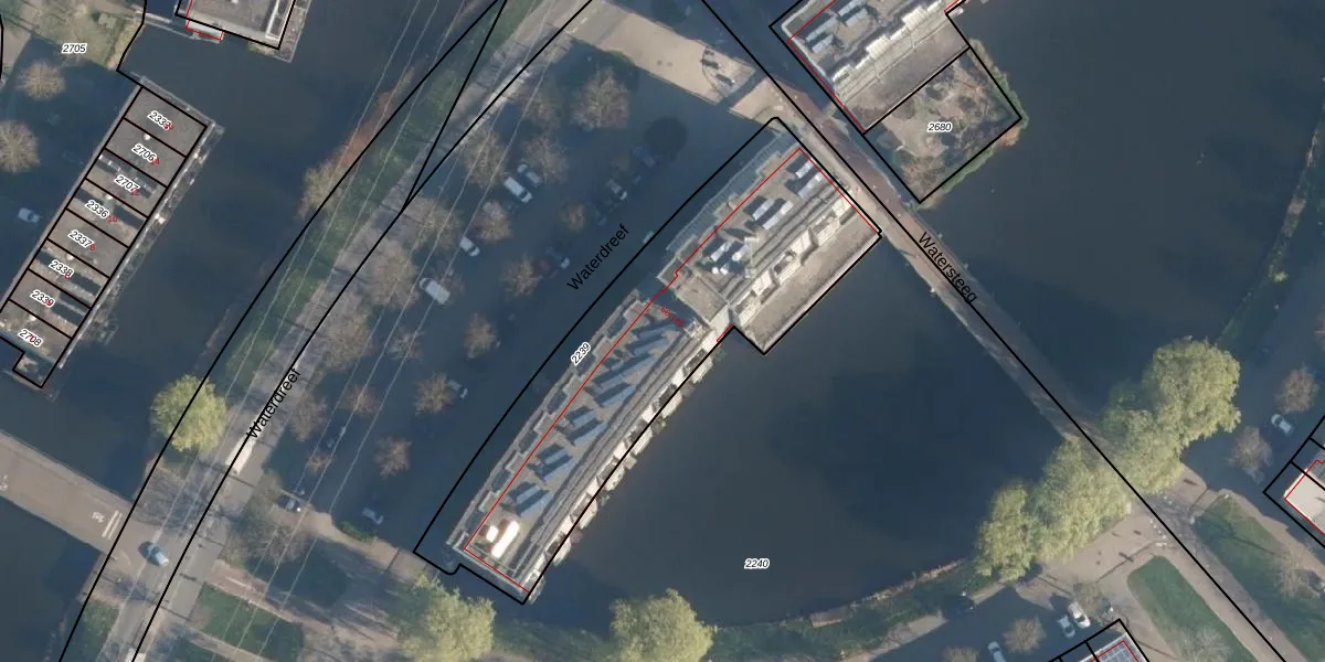 Waterdreef 144 is gelegen op kadastraal perceel AMF00P2239. Deze kadastrale aanduiding is uniek en wordt gebruikt door het Kadaster om eigendomsrechten en andere zakelijke rechten vast te leggen. Het perceel maakt onderdeel uit van de kadastrale gemeente Amersfoort.