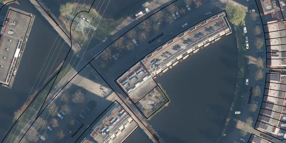 Waterdreef 174 is gelegen op kadastraal perceel AMF00P2237. Deze kadastrale aanduiding is uniek en wordt gebruikt door het Kadaster om eigendomsrechten en andere zakelijke rechten vast te leggen. Het perceel maakt onderdeel uit van de kadastrale gemeente Amersfoort.