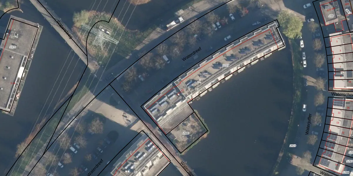 Waterdreef 188 is gelegen op kadastraal perceel AMF00P2237. Deze kadastrale aanduiding is uniek en wordt gebruikt door het Kadaster om eigendomsrechten en andere zakelijke rechten vast te leggen. Het perceel maakt onderdeel uit van de kadastrale gemeente Amersfoort.
