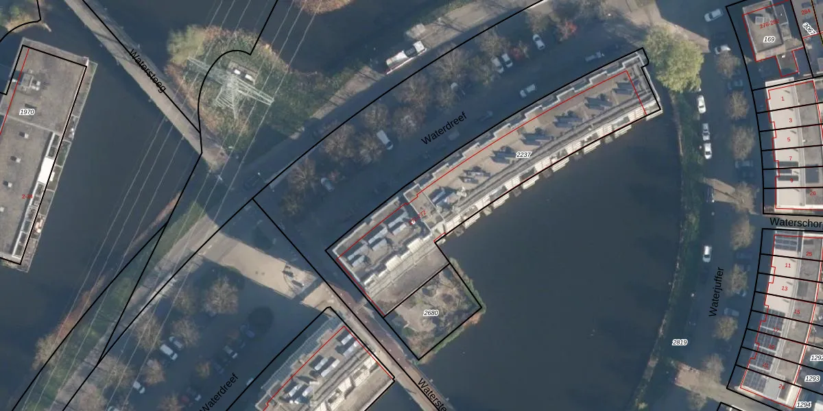 Waterdreef 190 is gelegen op kadastraal perceel AMF00P2237. Deze kadastrale aanduiding is uniek en wordt gebruikt door het Kadaster om eigendomsrechten en andere zakelijke rechten vast te leggen. Het perceel maakt onderdeel uit van de kadastrale gemeente Amersfoort.