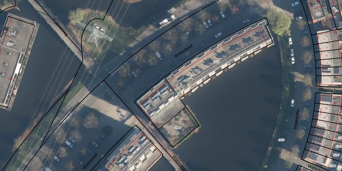 Waterdreef 262 is gelegen op kadastraal perceel AMF00P2237. Deze kadastrale aanduiding is uniek en wordt gebruikt door het Kadaster om eigendomsrechten en andere zakelijke rechten vast te leggen. Het perceel maakt onderdeel uit van de kadastrale gemeente Amersfoort.