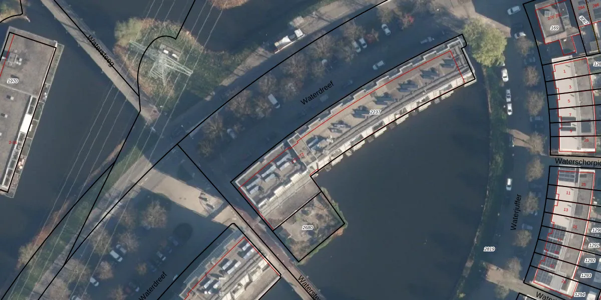Waterdreef 268 is gelegen op kadastraal perceel AMF00P2237. Deze kadastrale aanduiding is uniek en wordt gebruikt door het Kadaster om eigendomsrechten en andere zakelijke rechten vast te leggen. Het perceel maakt onderdeel uit van de kadastrale gemeente Amersfoort.
