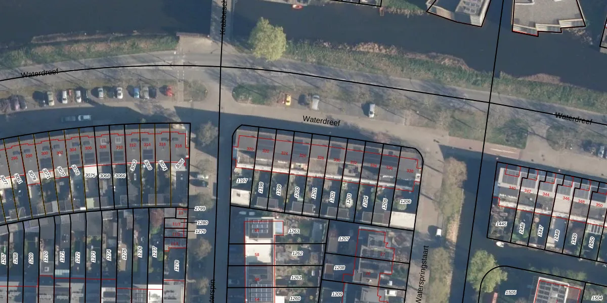 Waterdreef 326 is gelegen op kadastraal perceel AMF00P1200. Deze kadastrale aanduiding is uniek en wordt gebruikt door het Kadaster om eigendomsrechten en andere zakelijke rechten vast te leggen. Het perceel maakt onderdeel uit van de kadastrale gemeente Amersfoort.