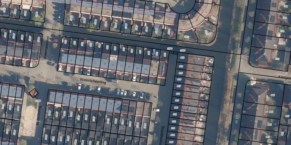 Waterscheerling 21 is gelegen op kadastraal perceel AMF00P920. Deze kadastrale aanduiding is uniek en wordt gebruikt door het Kadaster om eigendomsrechten en andere zakelijke rechten vast te leggen. Het perceel maakt onderdeel uit van de kadastrale gemeente Amersfoort.