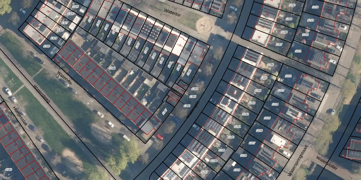 Het perceel waarop Waterspin 1-3 staat heeft een oppervlakte van 24 m². Dit is een klein perceel. De perceeloppervlakte wordt geregistreerd door het Kadaster. Gedetailleerde informatie over de maten van dit perceel kunt u vinden in het rapport Kadastrale kaart met maatvoering van Waterspin 1-3.