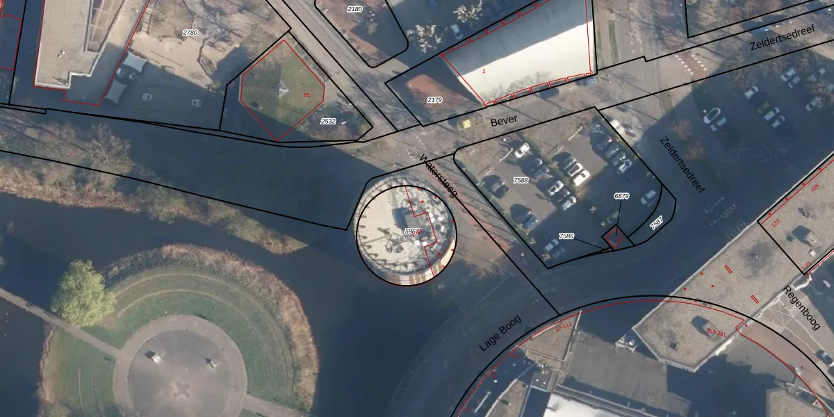 Watersteeg 57 is gelegen op kadastraal perceel AMF00O5967. Deze kadastrale aanduiding is uniek en wordt gebruikt door het Kadaster om eigendomsrechten en andere zakelijke rechten vast te leggen. Het perceel maakt onderdeel uit van de kadastrale gemeente Amersfoort.