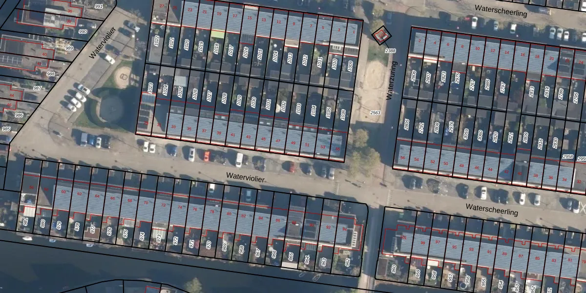 Gebruik de zoekbalk of klik op een perceel voor informatie over de adressen binnen dit perceel.