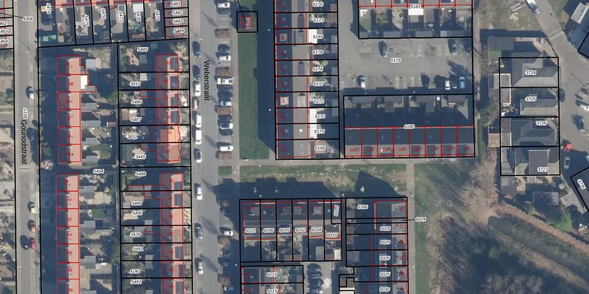 Weberstraat 152 is gelegen op kadastraal perceel AMF00G6168. Deze kadastrale aanduiding is uniek en wordt gebruikt door het Kadaster om eigendomsrechten en andere zakelijke rechten vast te leggen. Het perceel maakt onderdeel uit van de kadastrale gemeente Amersfoort.