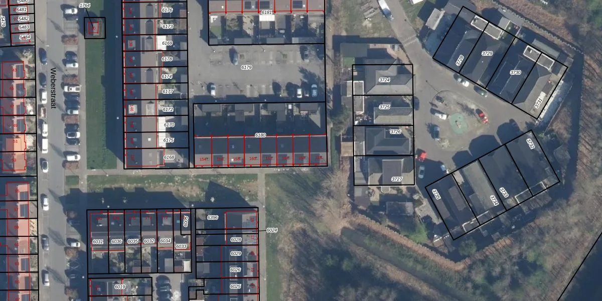 Weberstraat 166 is gelegen op kadastraal perceel AMF00G6180. Deze kadastrale aanduiding is uniek en wordt gebruikt door het Kadaster om eigendomsrechten en andere zakelijke rechten vast te leggen. Het perceel maakt onderdeel uit van de kadastrale gemeente Amersfoort.