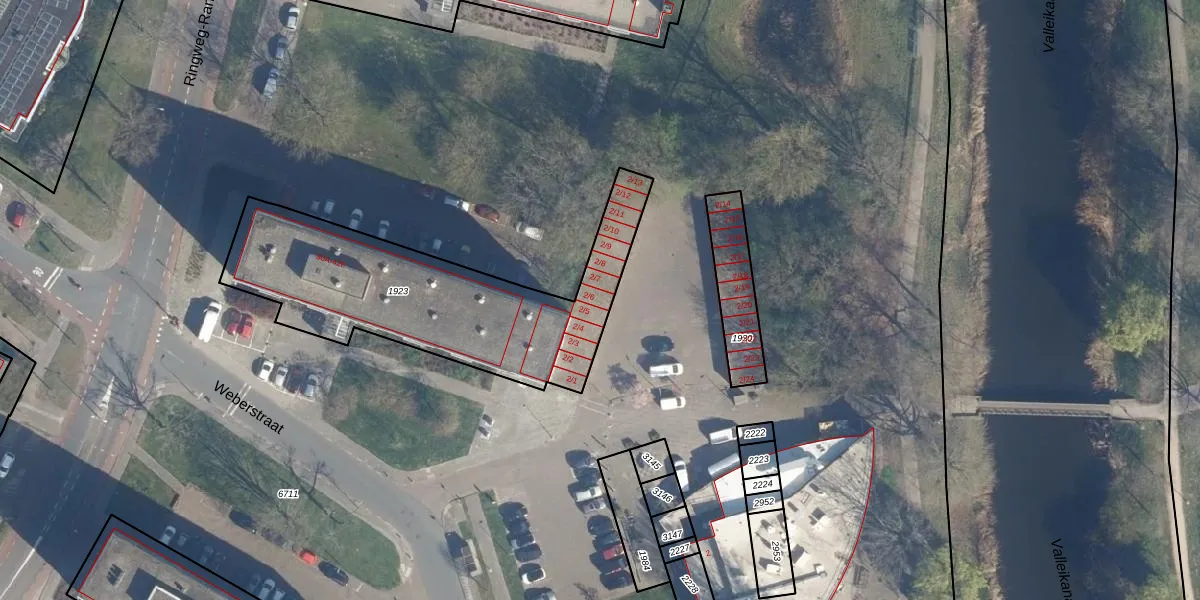 Het perceel waarop Weberstraat 2-6 staat heeft een oppervlakte van 1125 m². Dit is een zeer groot perceel. De perceeloppervlakte wordt geregistreerd door het Kadaster. Gedetailleerde informatie over de maten van dit perceel kunt u vinden in het rapport Kadastrale kaart met maatvoering van Weberstraat 2-6.