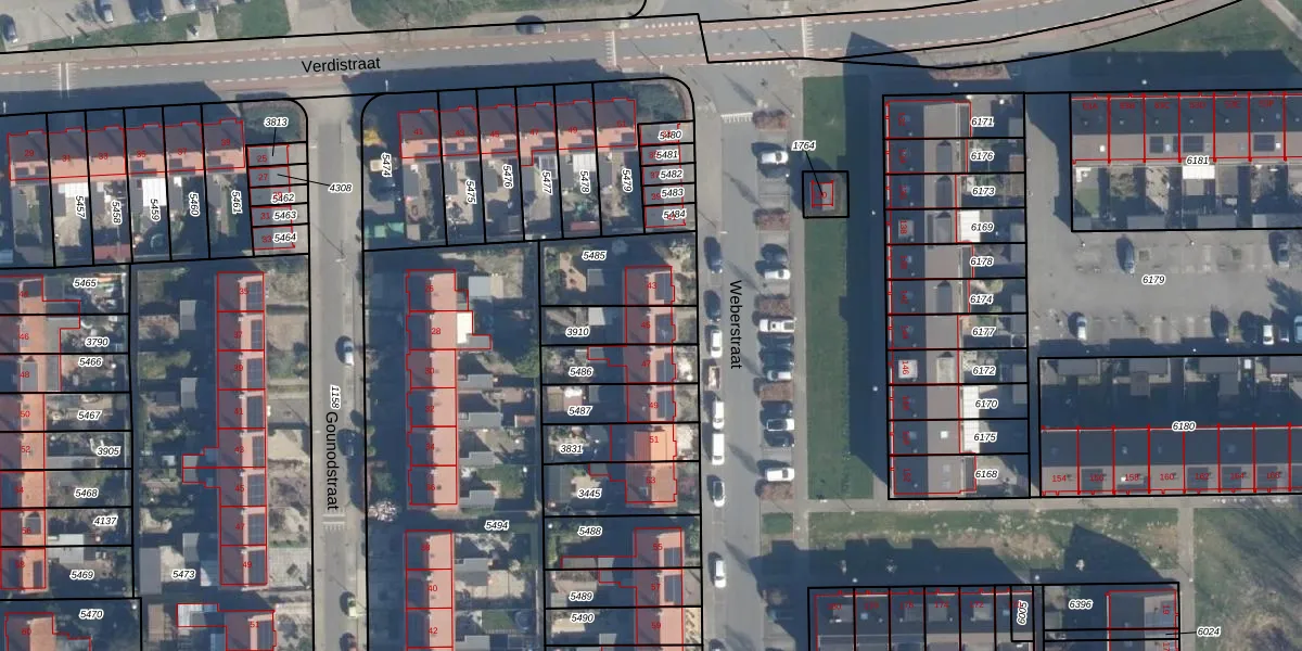 Gebruik de zoekbalk of klik op een perceel voor informatie over de adressen binnen dit perceel.