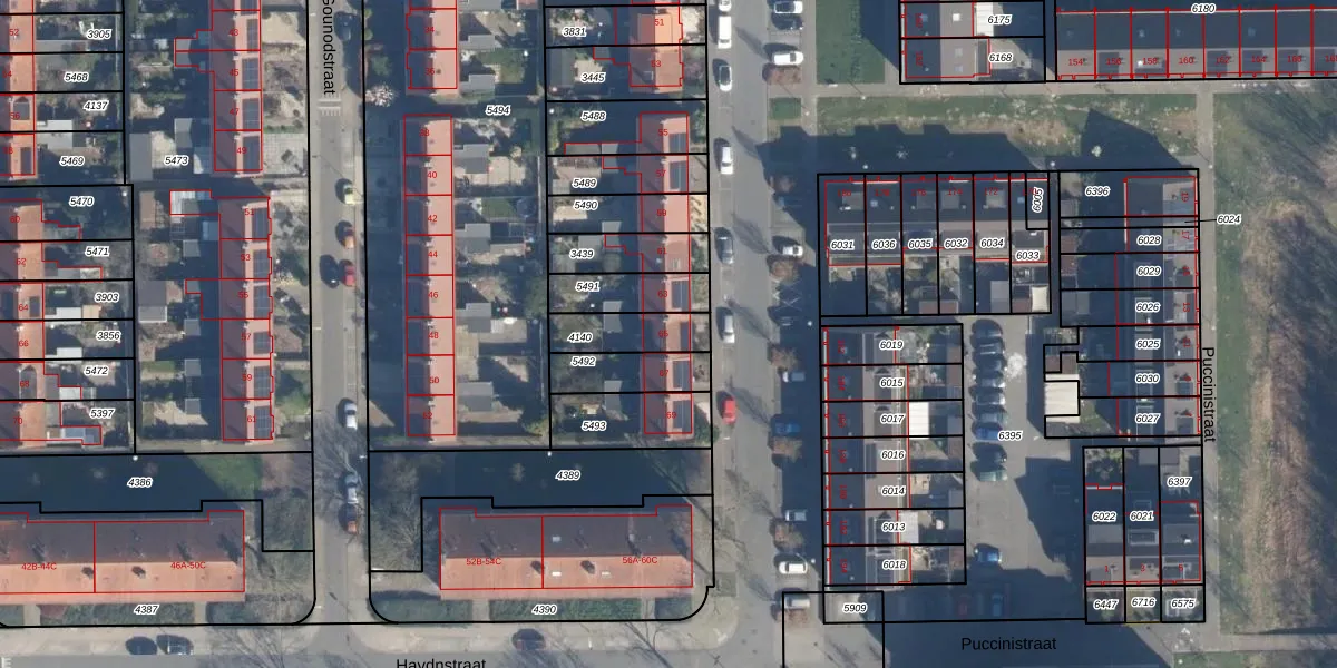 Gebruik de zoekbalk of klik op een perceel voor informatie over de adressen binnen dit perceel.