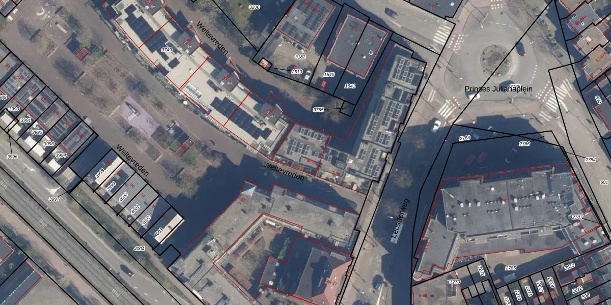 Weltevreden 34 is gelegen op kadastraal perceel AMF00H3749. Deze kadastrale aanduiding is uniek en wordt gebruikt door het Kadaster om eigendomsrechten en andere zakelijke rechten vast te leggen. Het perceel maakt onderdeel uit van de kadastrale gemeente Amersfoort.