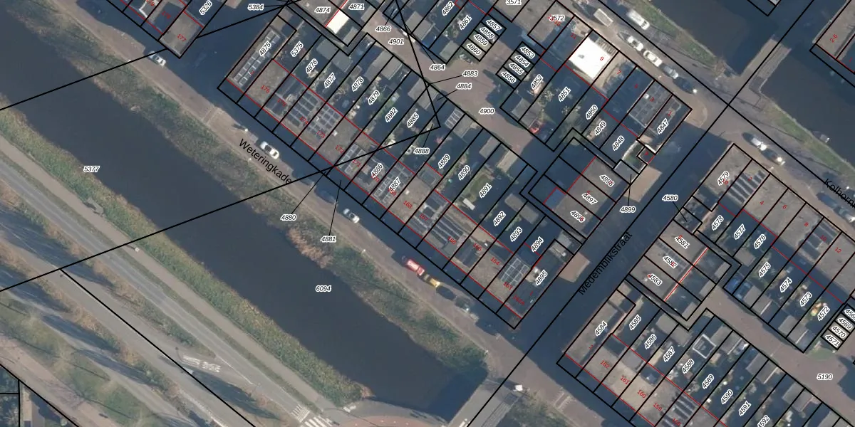 Weteringkade 167 is gelegen op kadastraal perceel HLD02B4890. Deze kadastrale aanduiding is uniek en wordt gebruikt door het Kadaster om eigendomsrechten en andere zakelijke rechten vast te leggen. Het perceel maakt onderdeel uit van de kadastrale gemeente Hoogland.