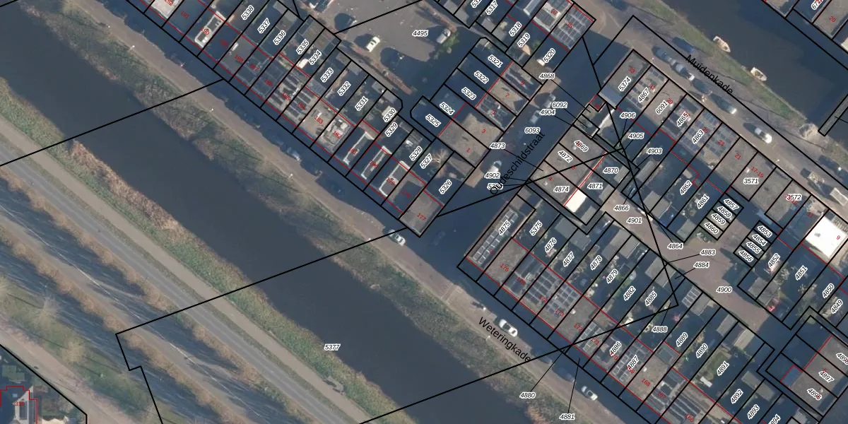 Weteringkade 177 is gelegen op kadastraal perceel HLD02B5326. Deze kadastrale aanduiding is uniek en wordt gebruikt door het Kadaster om eigendomsrechten en andere zakelijke rechten vast te leggen. Het perceel maakt onderdeel uit van de kadastrale gemeente Hoogland.