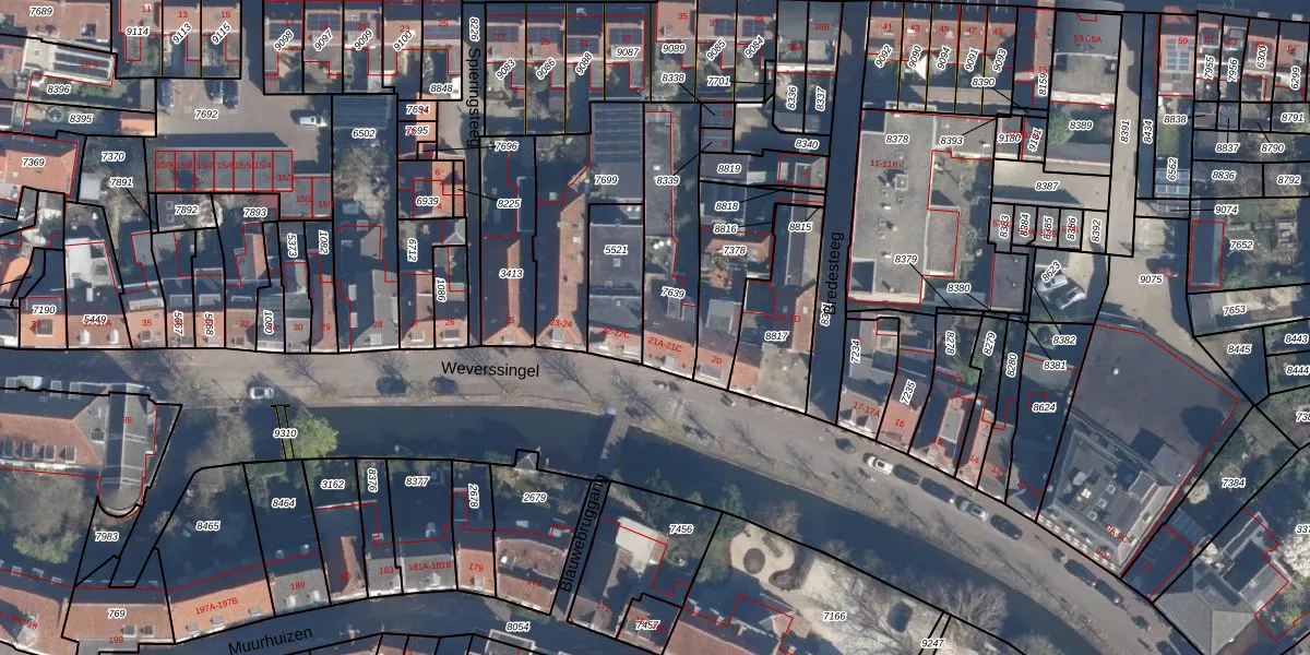 Het perceel waarop Weverssingel 21-C staat heeft een oppervlakte van 355 m². Dit is een groot perceel. De perceeloppervlakte wordt geregistreerd door het Kadaster. Gedetailleerde informatie over de maten van dit perceel kunt u vinden in het rapport Kadastrale kaart met maatvoering van Weverssingel 21-C.