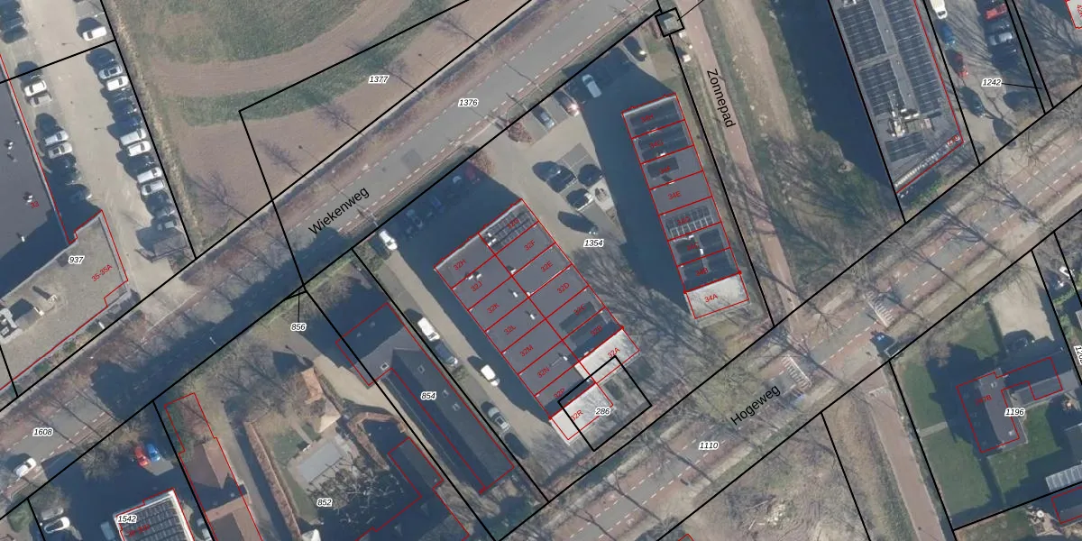 Het perceel waarop Wiekenweg 32-E staat heeft een oppervlakte van 3560 m². Dit is een zeer groot perceel. De perceeloppervlakte wordt geregistreerd door het Kadaster. Gedetailleerde informatie over de maten van dit perceel kunt u vinden in het rapport Kadastrale kaart met maatvoering van Wiekenweg 32-E.