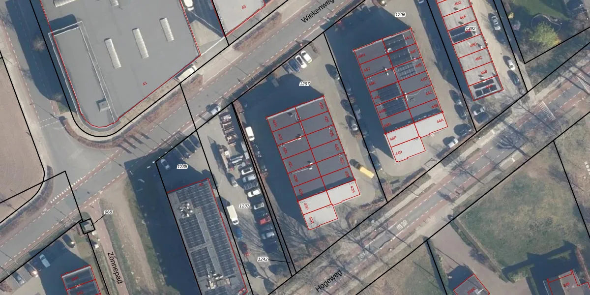 Het perceel waarop Wiekenweg 42-K staat heeft een oppervlakte van 2300 m². Dit is een zeer groot perceel. De perceeloppervlakte wordt geregistreerd door het Kadaster. Gedetailleerde informatie over de maten van dit perceel kunt u vinden in het rapport Kadastrale kaart met maatvoering van Wiekenweg 42-K.
