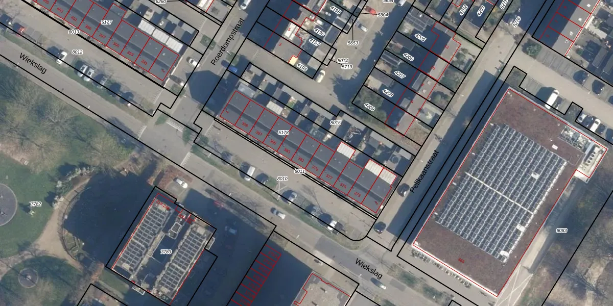 Het perceel waarop Wiekslag 381 staat heeft een oppervlakte van 1054 m². Dit is een zeer groot perceel. De perceeloppervlakte wordt geregistreerd door het Kadaster. Gedetailleerde informatie over de maten van dit perceel kunt u vinden in het rapport Kadastrale kaart met maatvoering van Wiekslag 381.