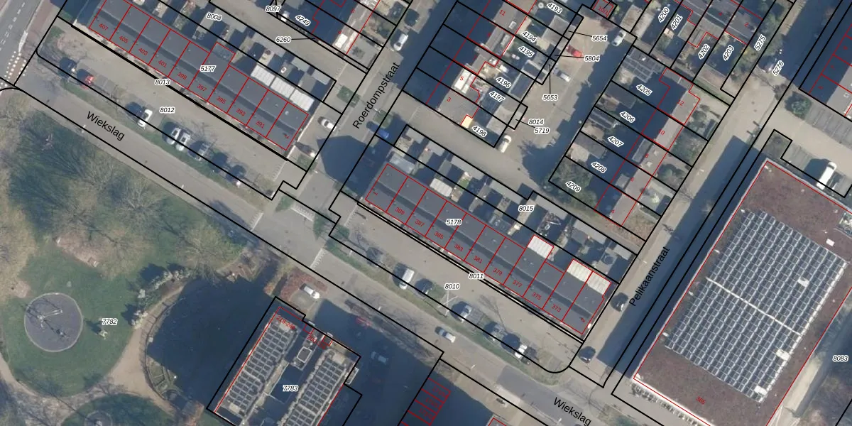Het perceel waarop Wiekslag 387 staat heeft een oppervlakte van 1054 m². Dit is een zeer groot perceel. De perceeloppervlakte wordt geregistreerd door het Kadaster. Gedetailleerde informatie over de maten van dit perceel kunt u vinden in het rapport Kadastrale kaart met maatvoering van Wiekslag 387.