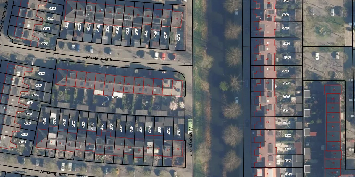 Het perceel waarop Winstongaarde 31 staat heeft een oppervlakte van 1972 m². Dit is een zeer groot perceel. De perceeloppervlakte wordt geregistreerd door het Kadaster. Gedetailleerde informatie over de maten van dit perceel kunt u vinden in het rapport Kadastrale kaart met maatvoering van Winstongaarde 31.